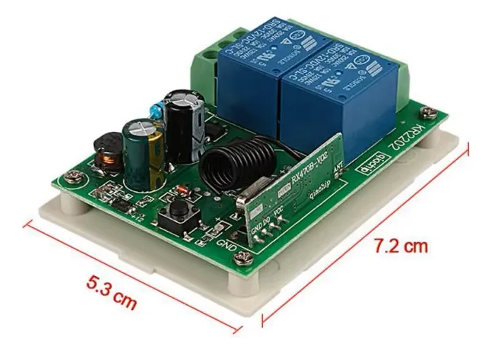 Módulo Tarjeta de 2 Relés Inalámbricos 433MHz + 1 Control Remoto de 2 Botones